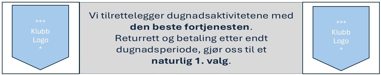 BESTE DUGNAD! Anbefalt salgspris 150,- pr. pakke. Fortjeneste 75,- (90,- med avtale.). 16 utøvere selger 5 hver. Fortjeneste 6.000,-. (7.200,-)