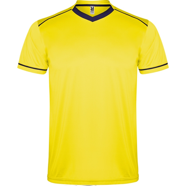 T-skjortene har tofarget V-hals og kontraststriper på skuldre og ermer. Forsterket, tapet halskant. Shortsen har elastisk linning med justerbar snor, fargekontrast og sidesplitter. Strømer i matchende farger.
