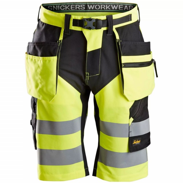 Shortsene har flere praktiske lommer, inkludert to baklommer, en lårlomme og en mobillomme, samt spesialdesignede hengelommer og en stropp til knivholder. Stretchpanelet bidrar til økt bevegelsesfrihet under arbeid. Dessuten er shortsene utstyrt med godkjente reflekser i henhold til EN 20471 Klasse 1, som gir høy synlighet i arbeidsmiljøet.