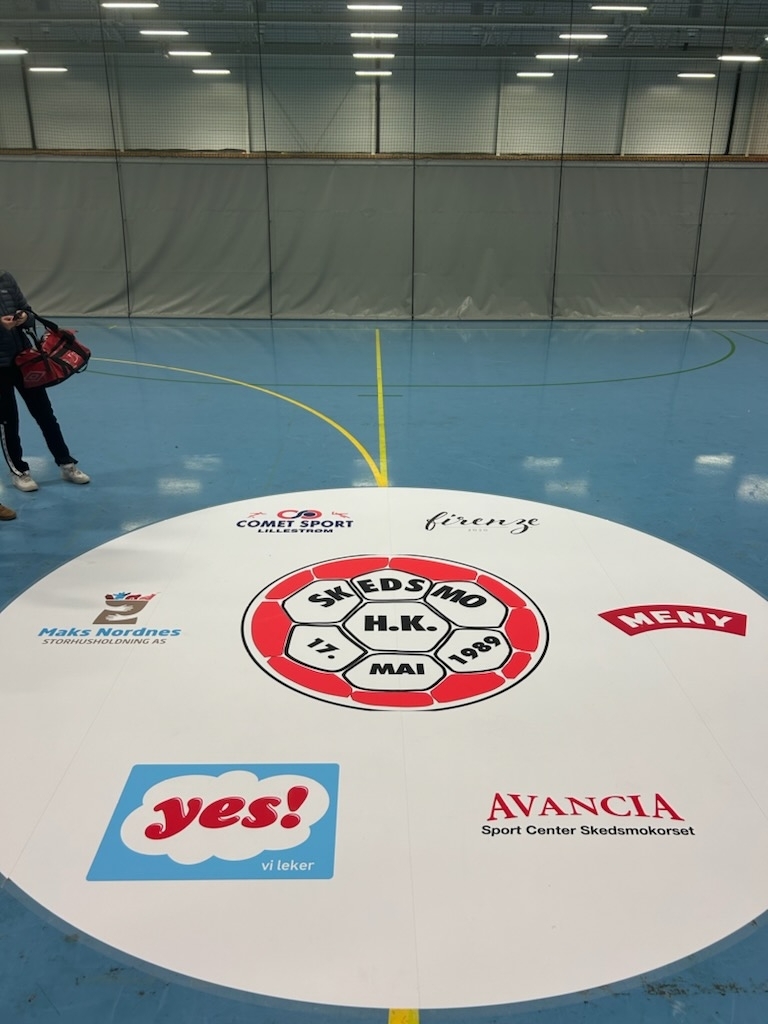 Gulvreklame som monteres før arrangement like enkelt som den fjernes etter, og som kan brukes på hvert eneste arrangement gjennom hele sesongen. Sjekk artikkel på Topphåndball her