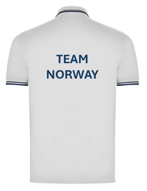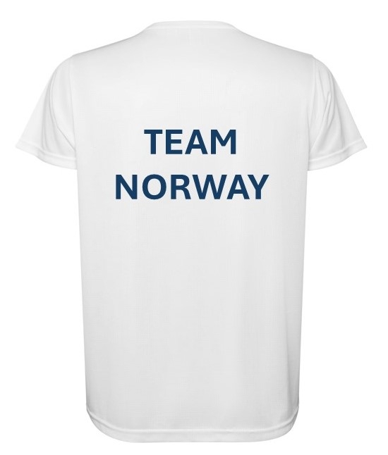 Leveres med forbundslogo og flagg på trykket på front og "Team Norway" trykket på rygg. Navn og/eller initialer kan monteres mot et tillegg i prisen.