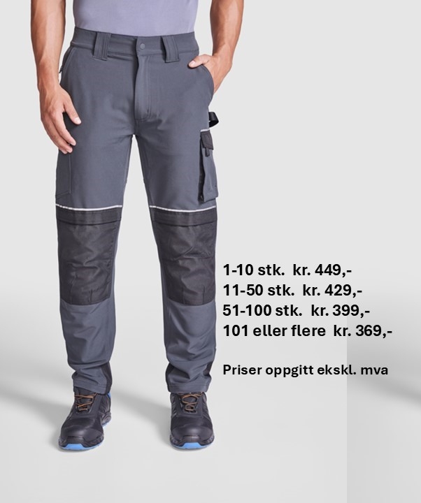 Leveres i størrelser fra Small til 3-XL i 2 forskjellige farger. Priser inkluderer logo 1 farge montert på låret. Priser oppgitt x. mva.