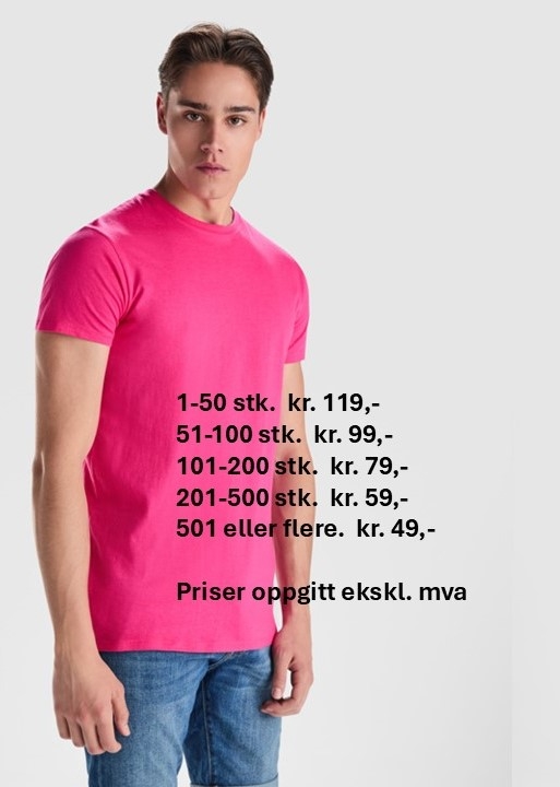 Leveres i størrelser fra X-Small til 3-XL i 38 forskjellige farger. Priser inkluderer logo 1 farge montert front. Priser oppgitt x. mva.
