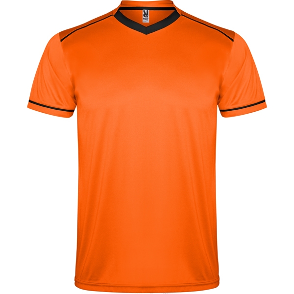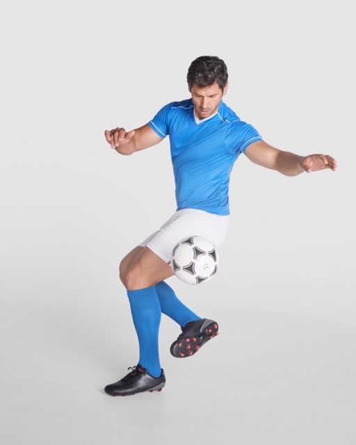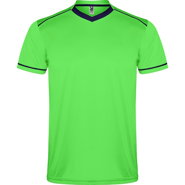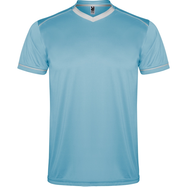 T-skjortene har tofarget V-hals og kontraststriper på skuldre og ermer. Forsterket, tapet halskant. Shortsen har elastisk linning med justerbar snor, fargekontrast og sidesplitter. Strømer i matchende farger.